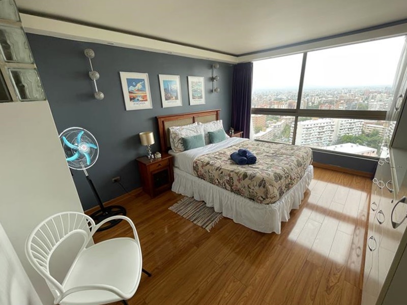 Dos dormitorios de excelente tamaño, el principal suite igualmente con ventanales grandes desde cielo raso a piso con vista despejada hacia la cordillera.