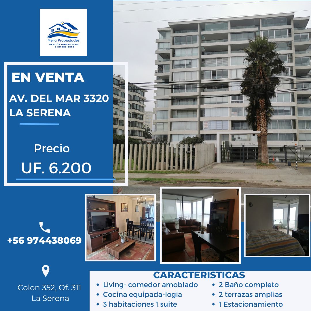 Disfruta de un acogedor departamento (sin amoblado) frente a la playa en La Serena, ubicado en piso 11 con una vista espectacular al mar. Ideal para vivir, vacacionar o invertir en una de las zonas con mayor plusvalía de la IV Región.