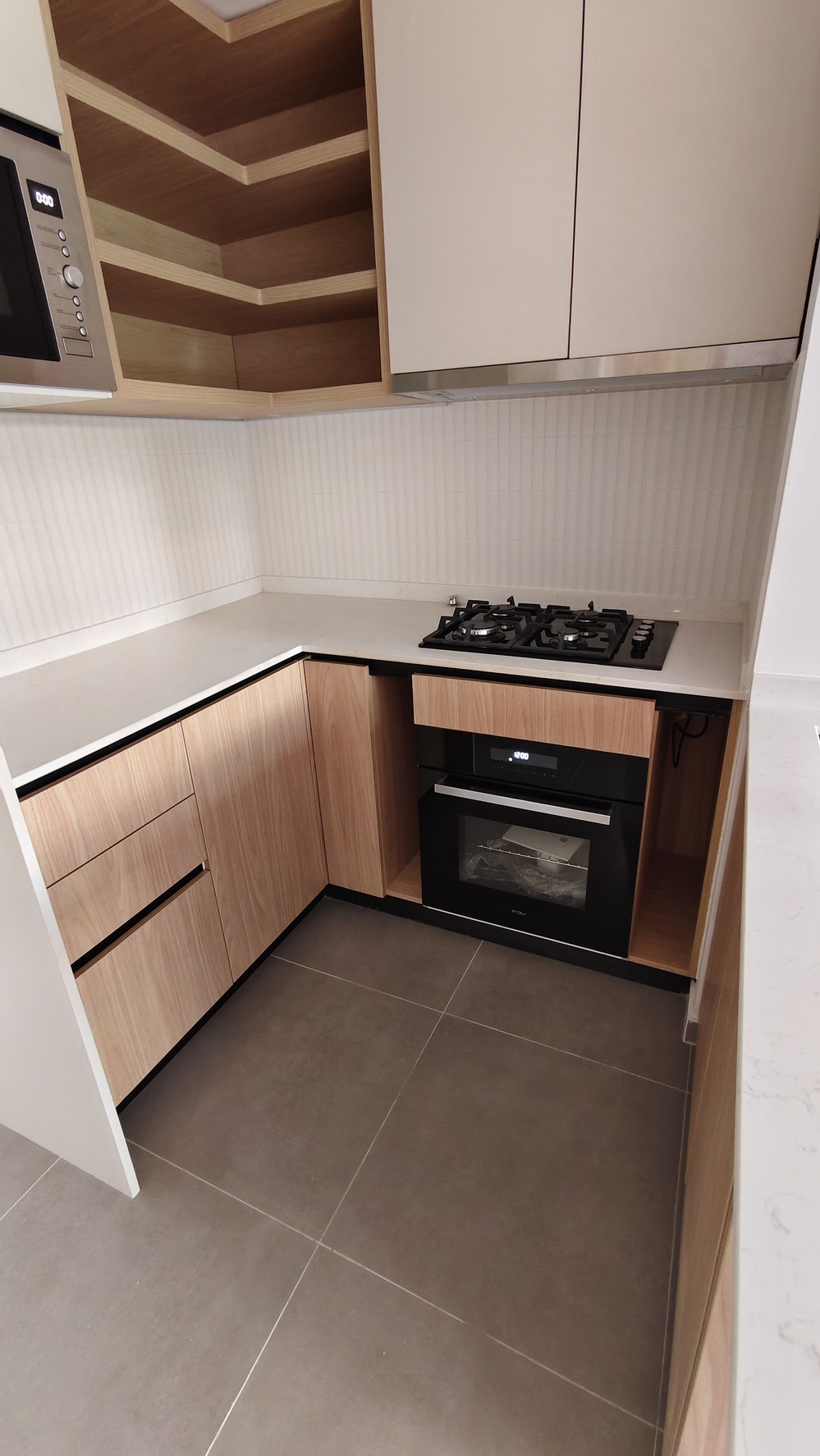 Cocina incorporada y equipada, incluye horno eléctrico, horno microondas, encimera a gas.