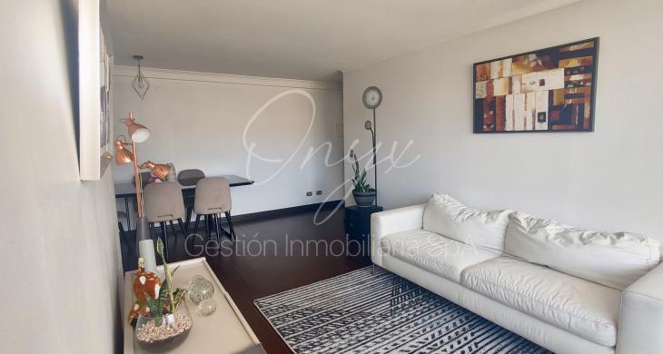Este impecable departamento de 77 m² ofrece un diseño funcional y acogedor, ideal para familias o profesionales. Cuenta con 3 dormitorios, incluyendo un dormitorio en suite con balcón propio , y 2 baños completos. Dispone además de 1 estacionamiento y 1 bodega, brindando soluciones de almacenamiento adicionales. Construido en 2012, este departamento se encuentra en óptimas condiciones y listo para habitar.