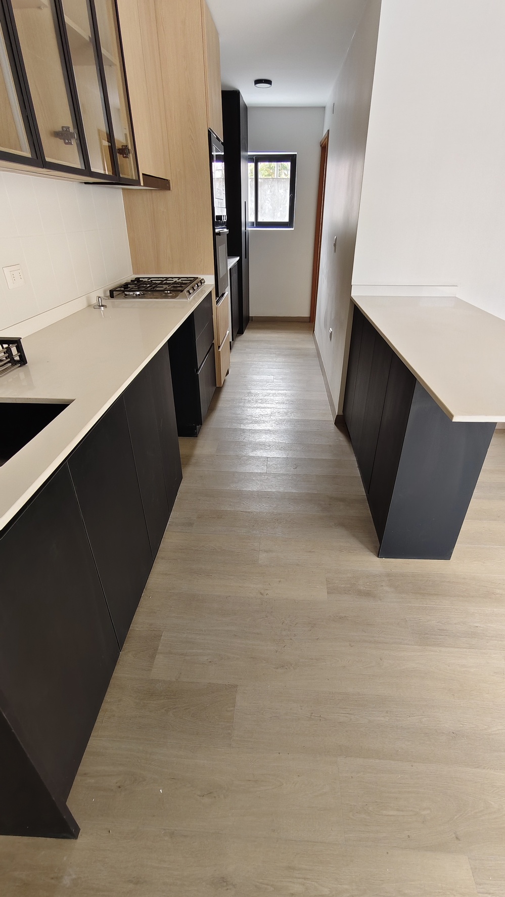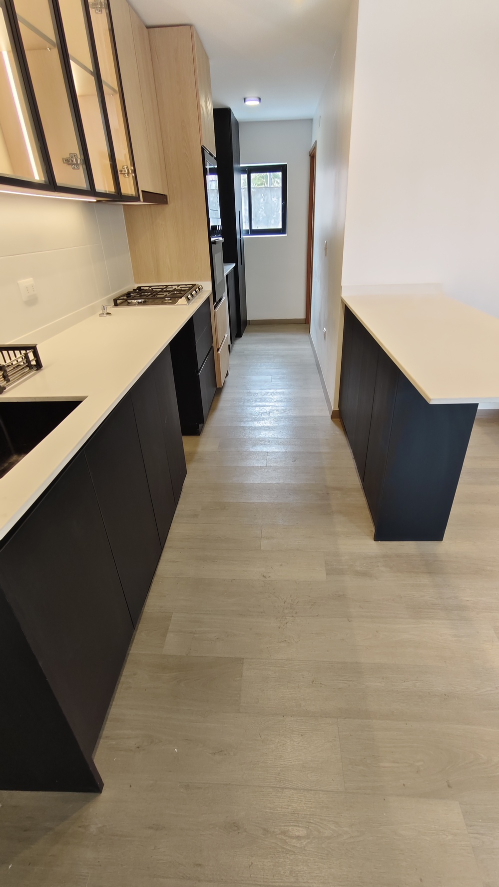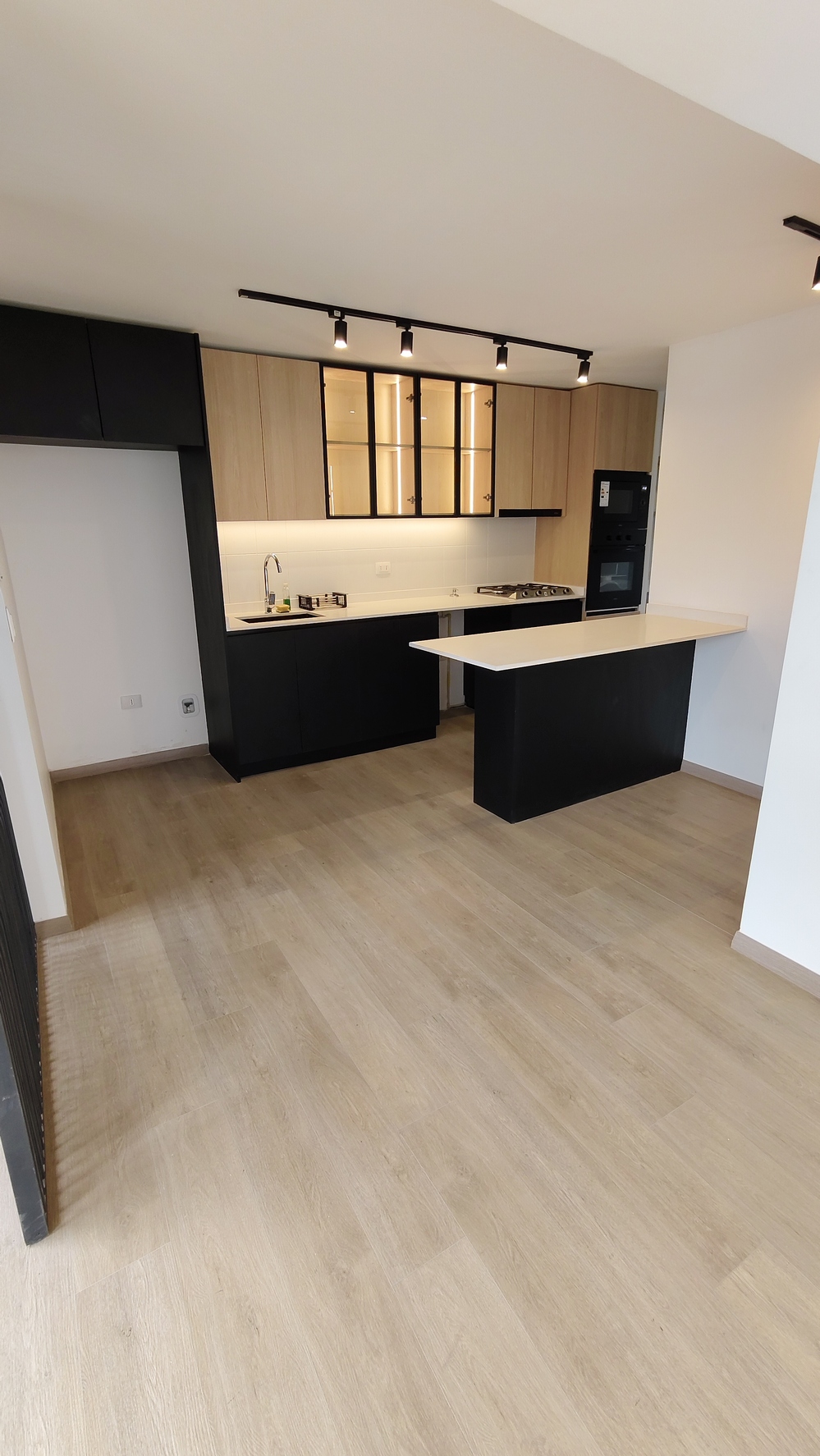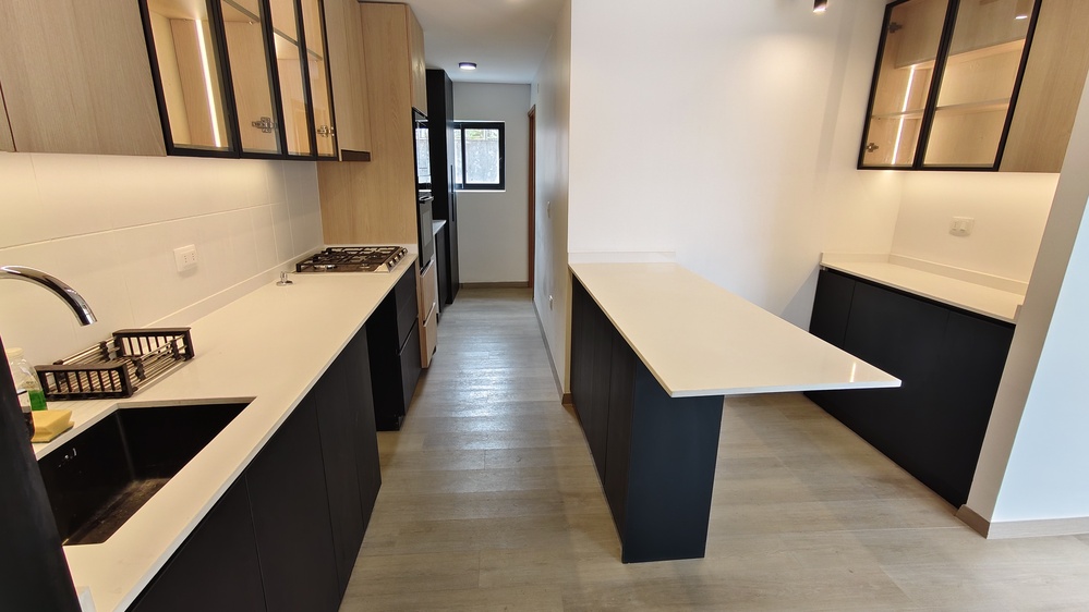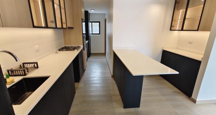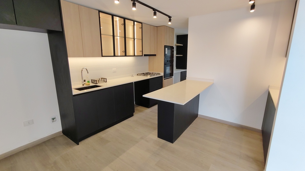 Cocina incorporada, equipada con horno eléctrico, horno microondas.