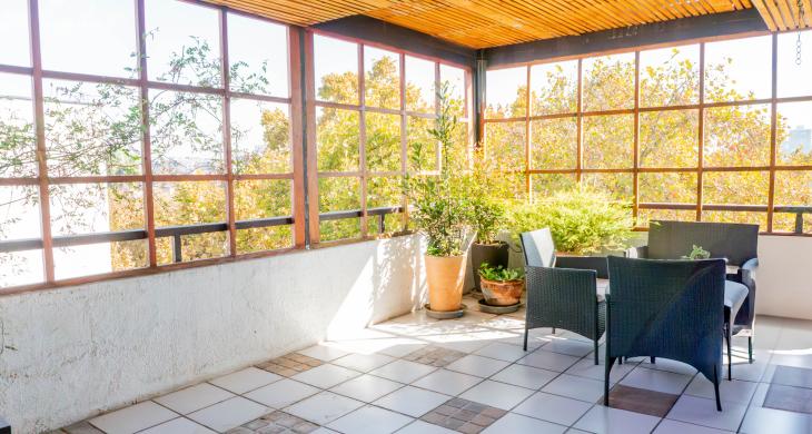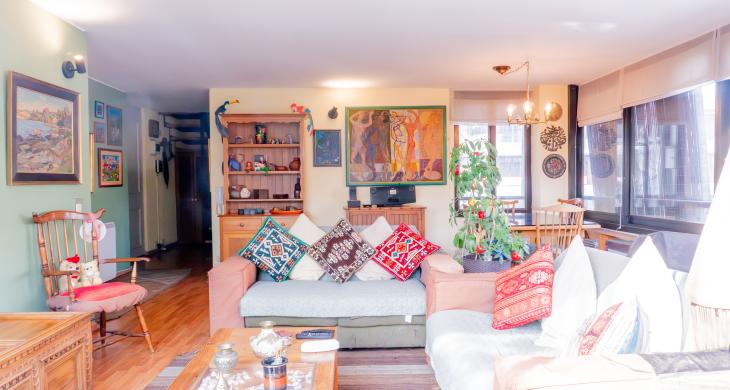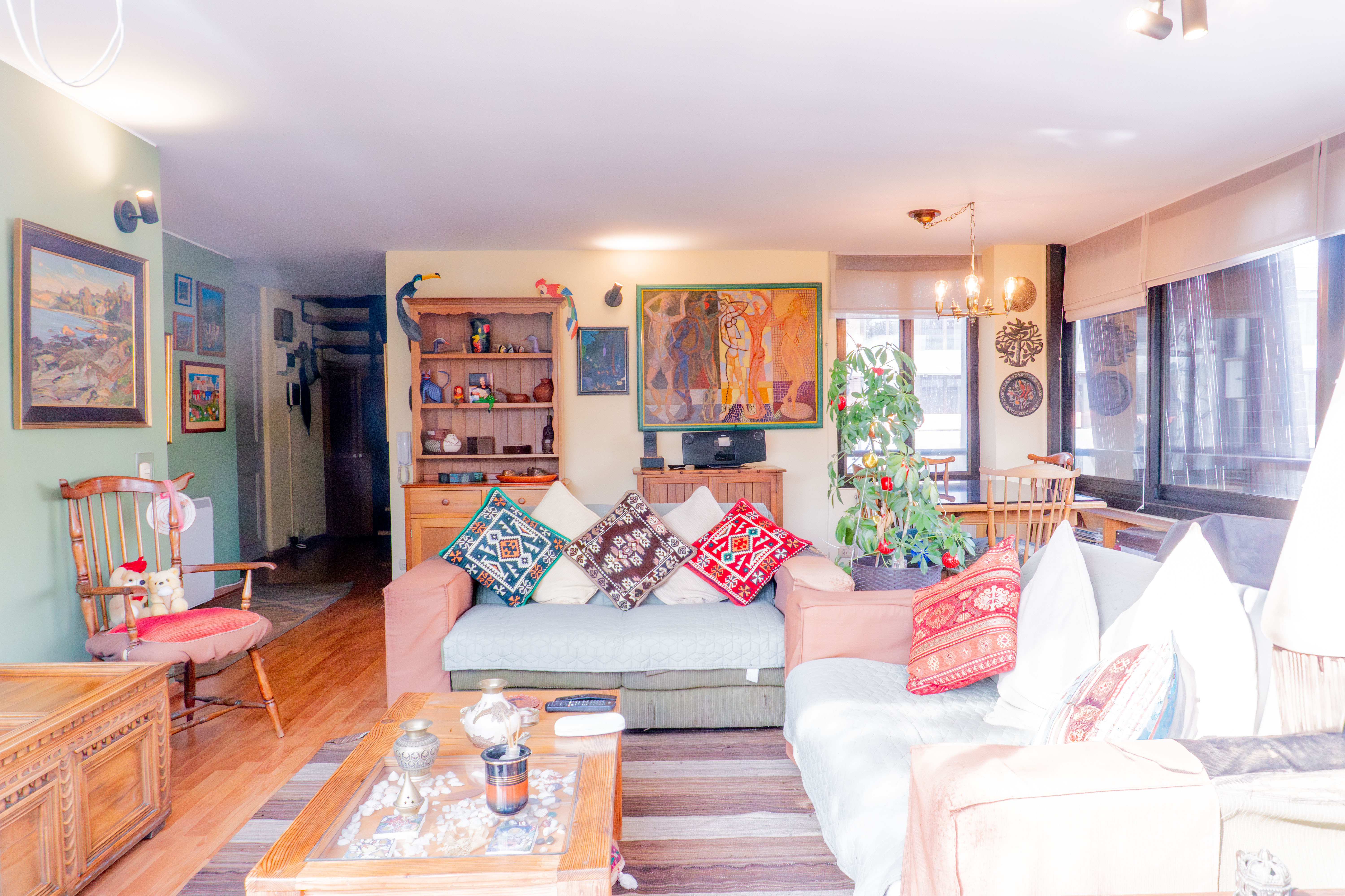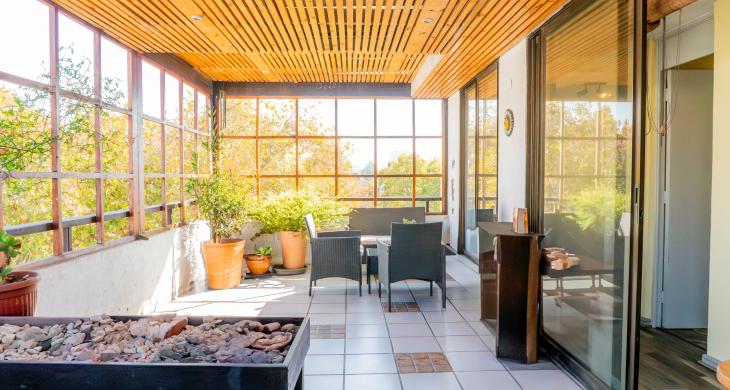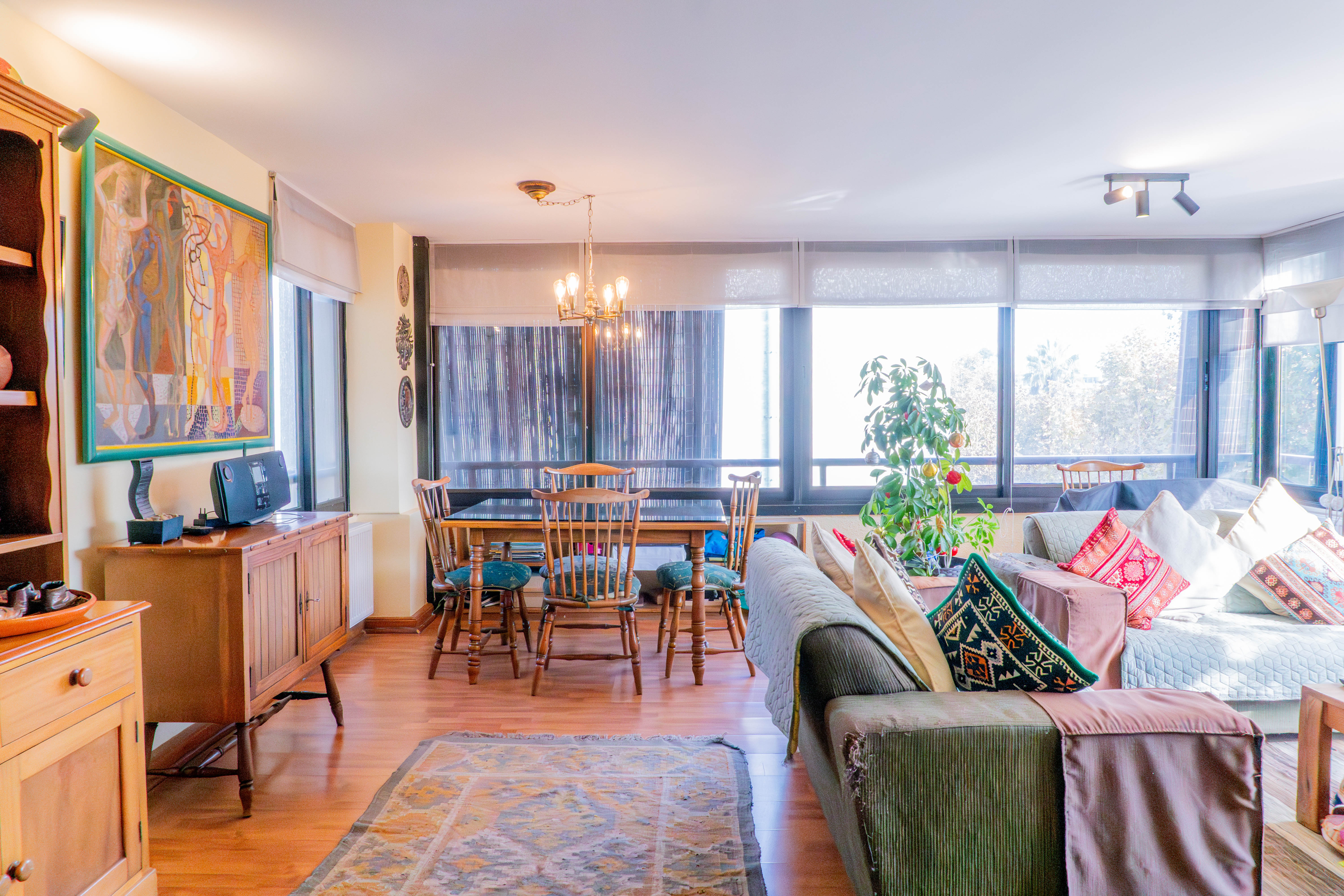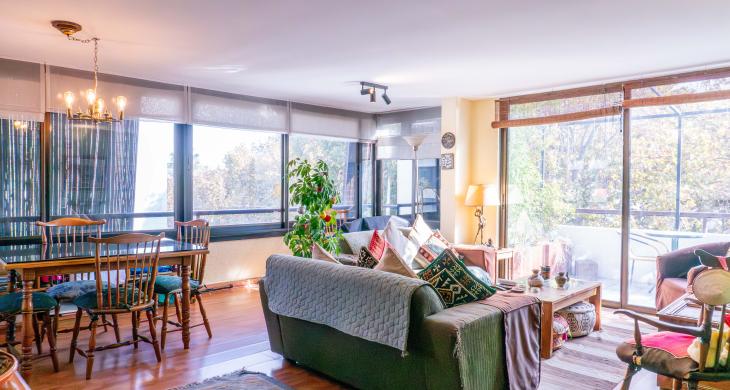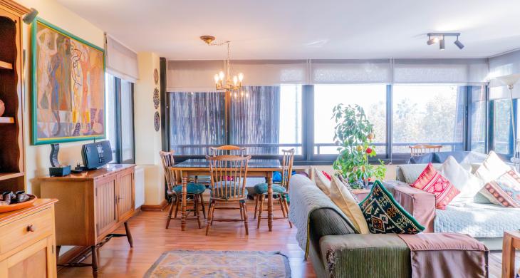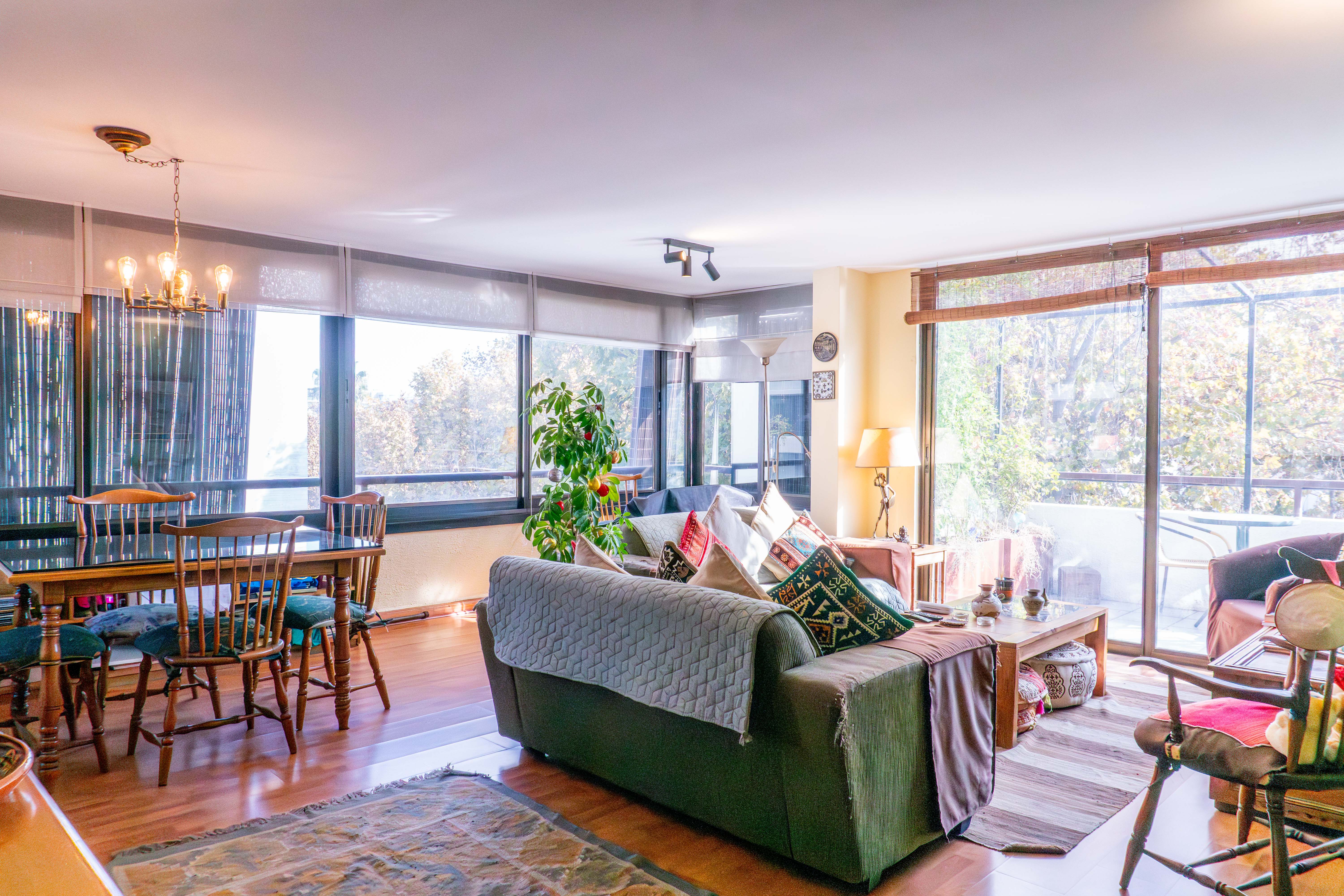 -Gran living comedor con multiples ventanales y con acceso a terraza a lo largo del living.