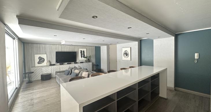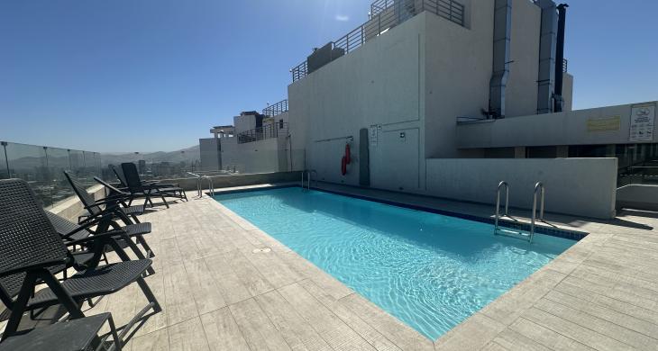 Esta sofisticada unidad, construida en el año 2019, se presenta como una oportunidad única para quienes buscan calidad de vida y funcionalidad en un entorno urbano consolidado. Con una superficie total de 46 metros cuadrados, el inmueble distribuye eficientemente sus 43 metros cuadrados construidos, sumando una agradable terraza de 3 metros cuadrados ideal para disfrutar del aire libre con una perspectiva privilegiada de la ciudad. El programa arquitectónico contempla dos dormitorios espaciosos con closet y un baño completo con terminaciones contemporáneas, espacio para home office, conexión para lavadora y una cocina integrada al living comedor lo que hace un lugar acogedor.