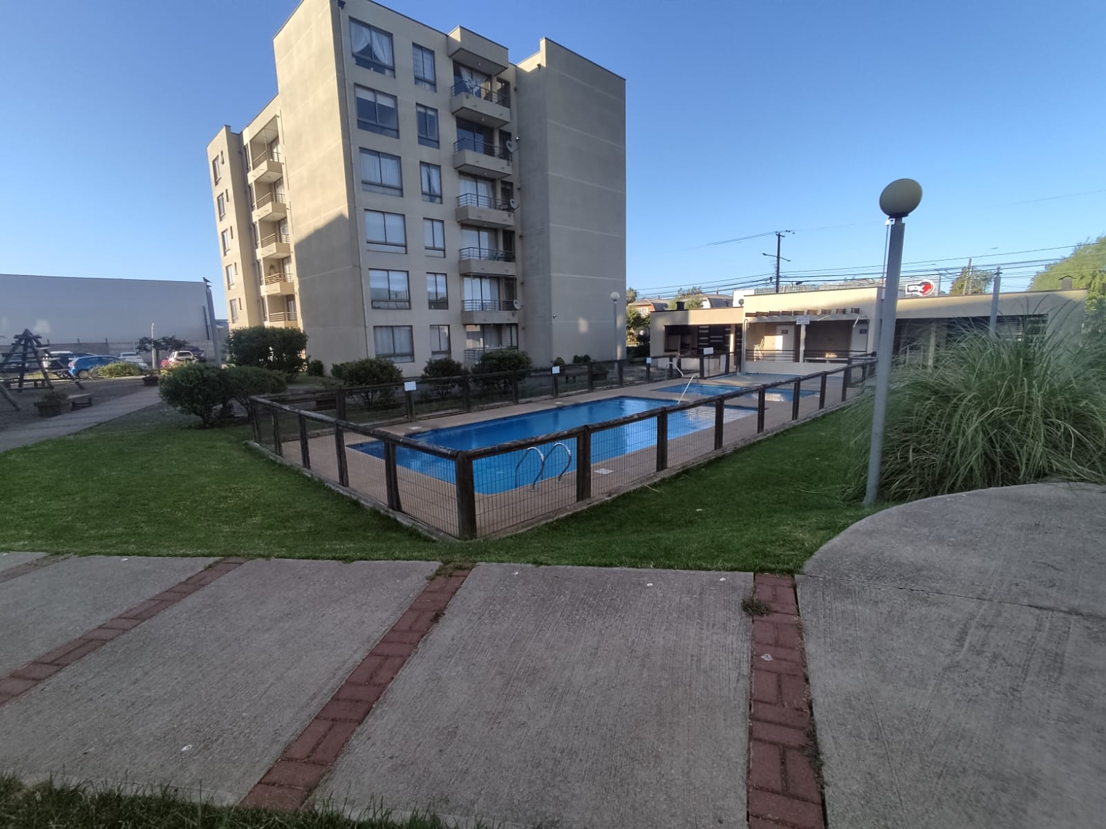 El condominio con acceso controlado 24/7, tiene piscina, quincho, áreas verdes.