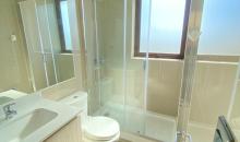 * 1 Baño con pavimentos de porcelanato, pie de ducha y mampara vidriada, cubierta de vanitorios en mármol compacto, termo eléctrico para agua caliente.