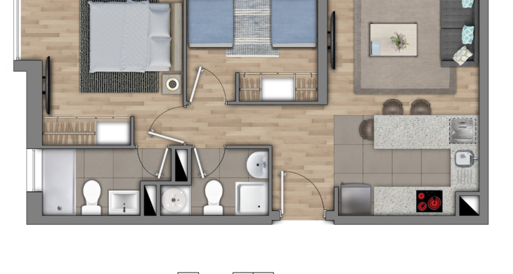 2 Dormitorios / 2 Baños + Terraza