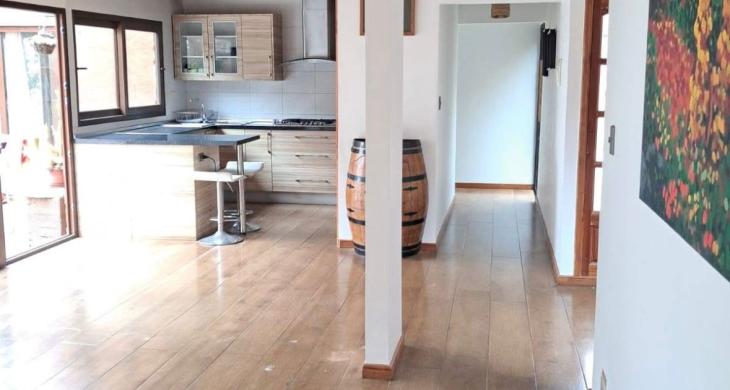 •Cocina americana integrada a living, con vigas de madera a la vista