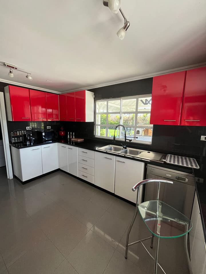 CARACTERÍSTICAS: Living, comedor, cocina full equipada, Logia amplia, 4 dormitorios con Walk in closet, 3 Salas de baños pisos y paredes de porcelanato, terraza, quincho, parrilla, horno, piscina de hormigón 6x12 mts; bodega exterior y cobertizo para 3 vehículos.