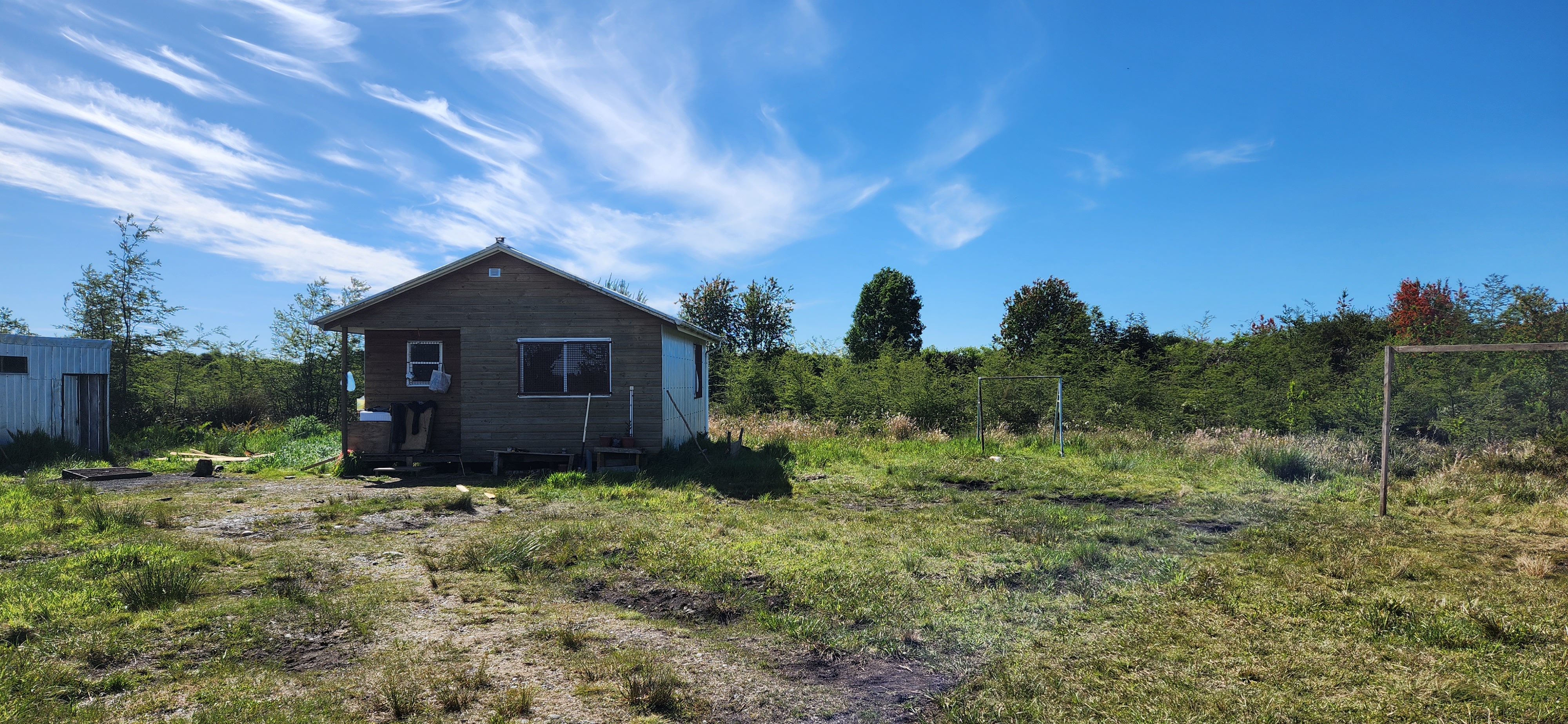 Actualmente cuenta con una pequeña cabaña con agua potable , luz eléctrica y conexión para corriente trifásica en caso de requerirlo .